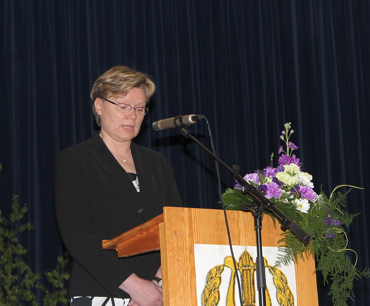 kotiseutulaulun aikana. Tämän jälkeen oli vuorossa rehtori Merja